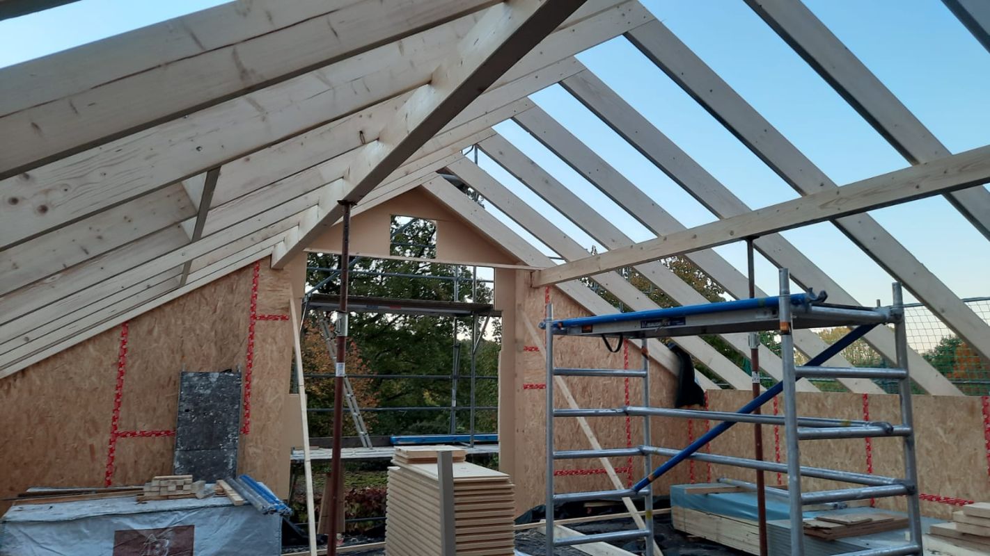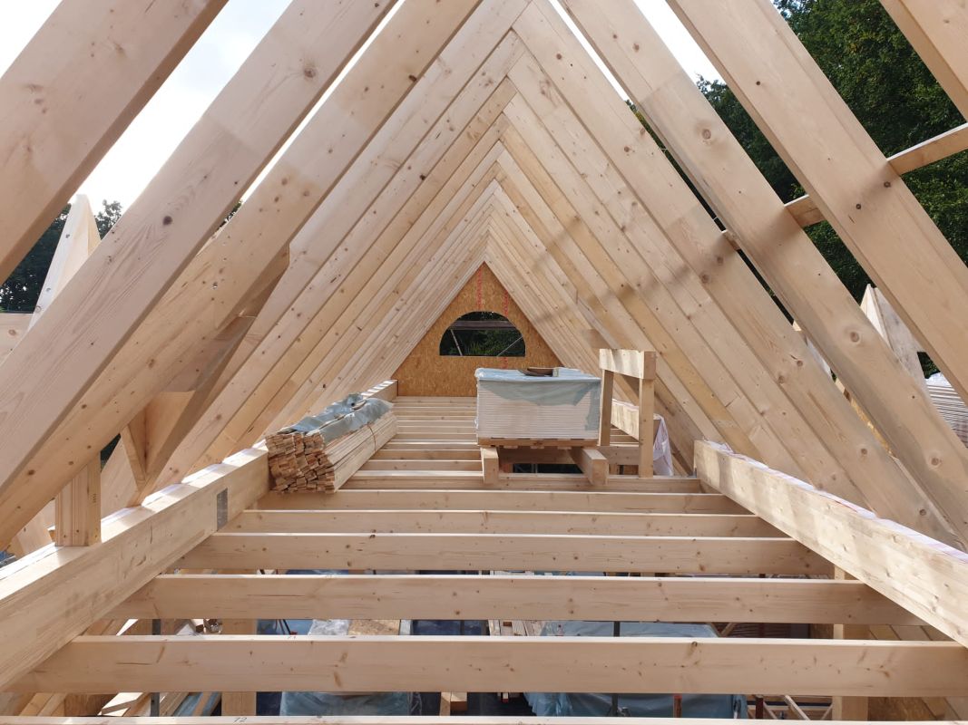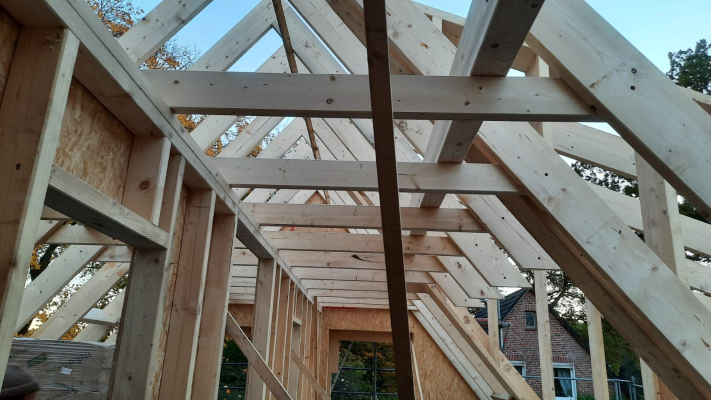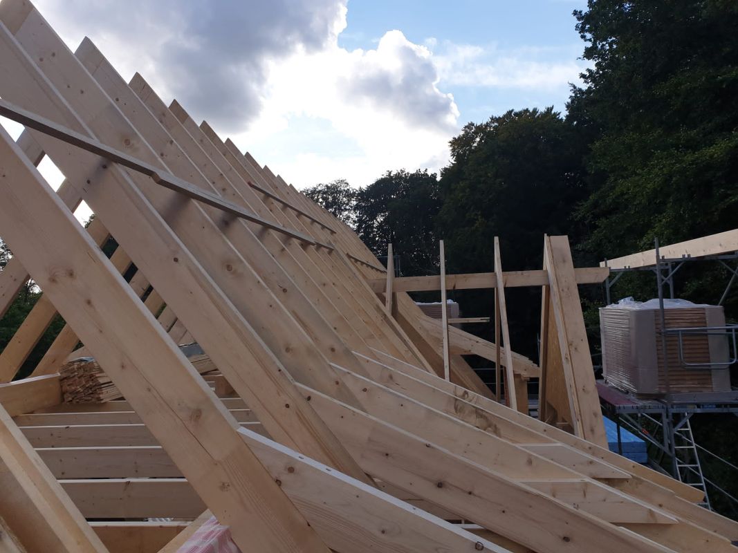 Wir errichten für Sie fachgerechte Dachstühle. Dazu erledigen wir sämtliche planerischen und statischen Vorarbeiten inklusive möglicher neuer Baugenehmigungen.