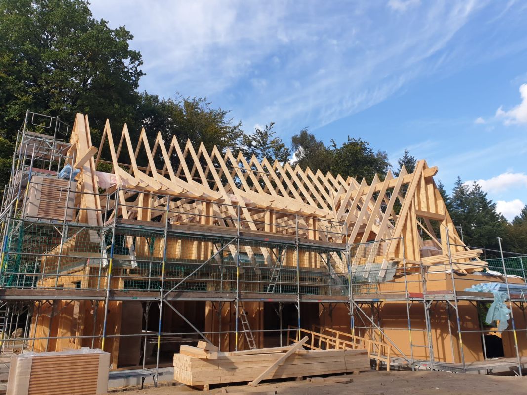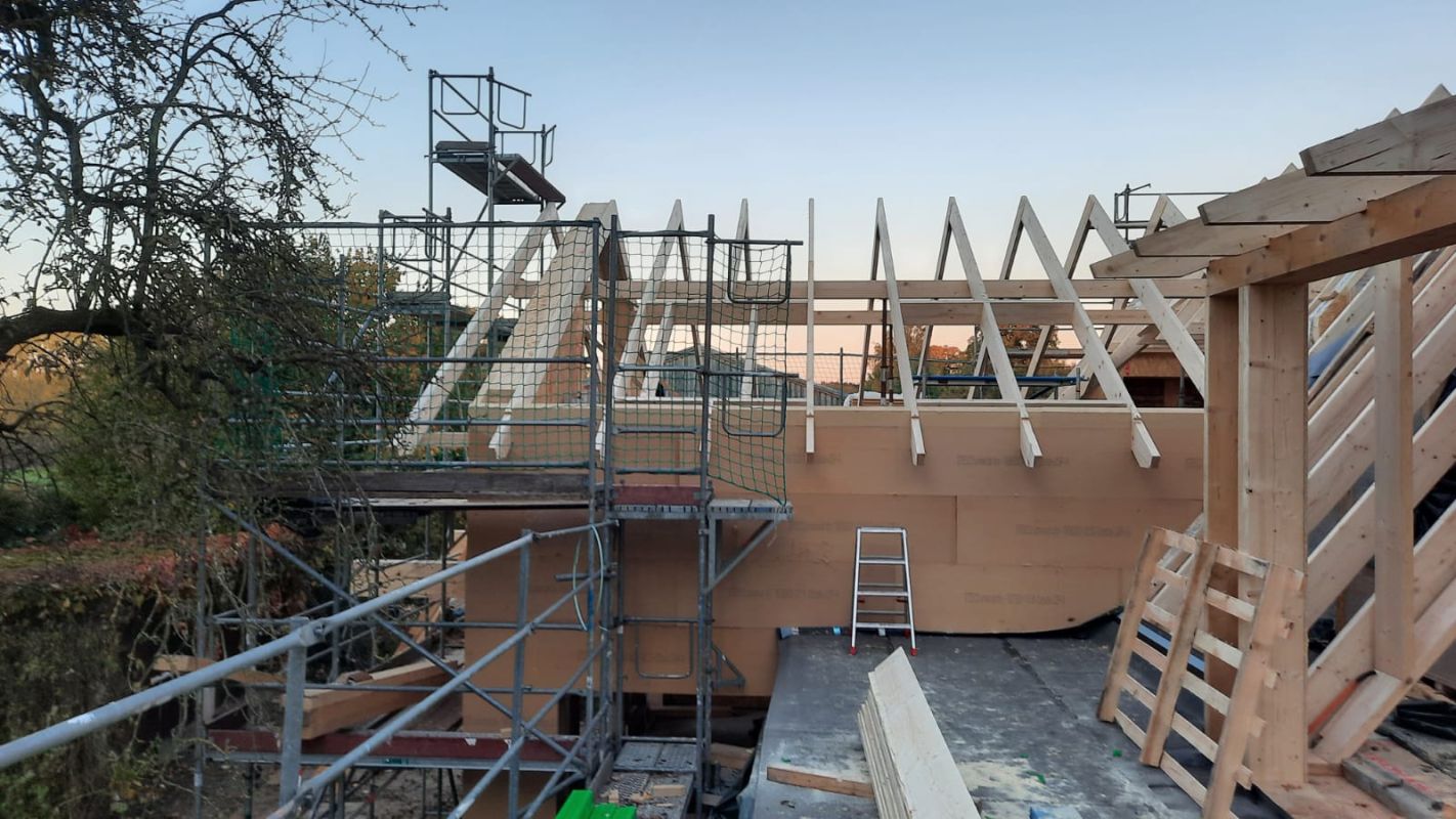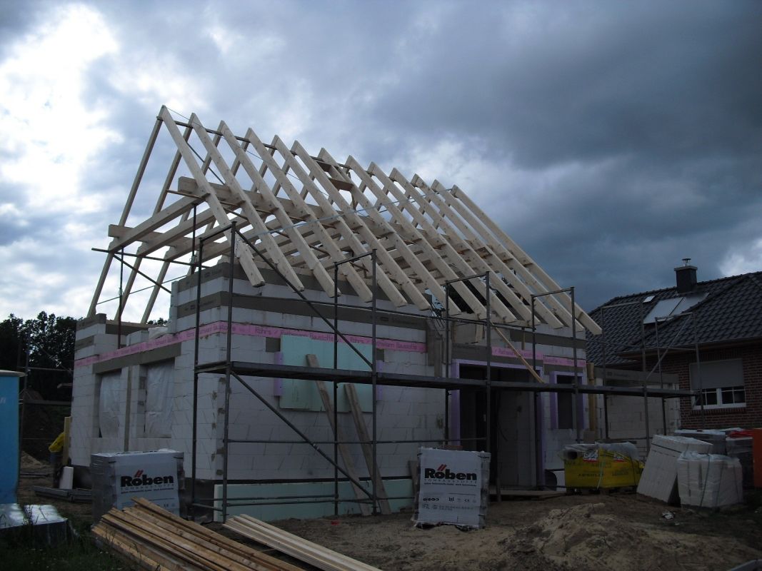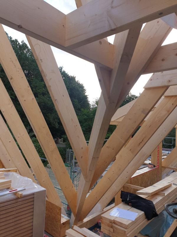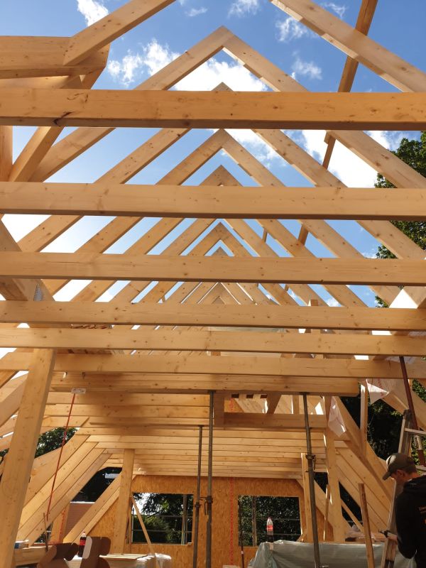 Wir errichten für Sie fachgerechte Dachstühle. Dazu erledigen wir sämtliche planerischen und statischen Vorarbeiten inklusive möglicher neuer Baugenehmigungen.