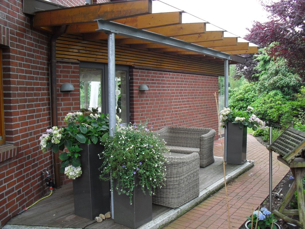 Im Gartenbau bieten wir Ihnen zum Beispiel die Errichtung von Carports oder Gartenhäusern, das Verlegen von Terrassendecks und -dächer oder den Aufbau von Zäunen.